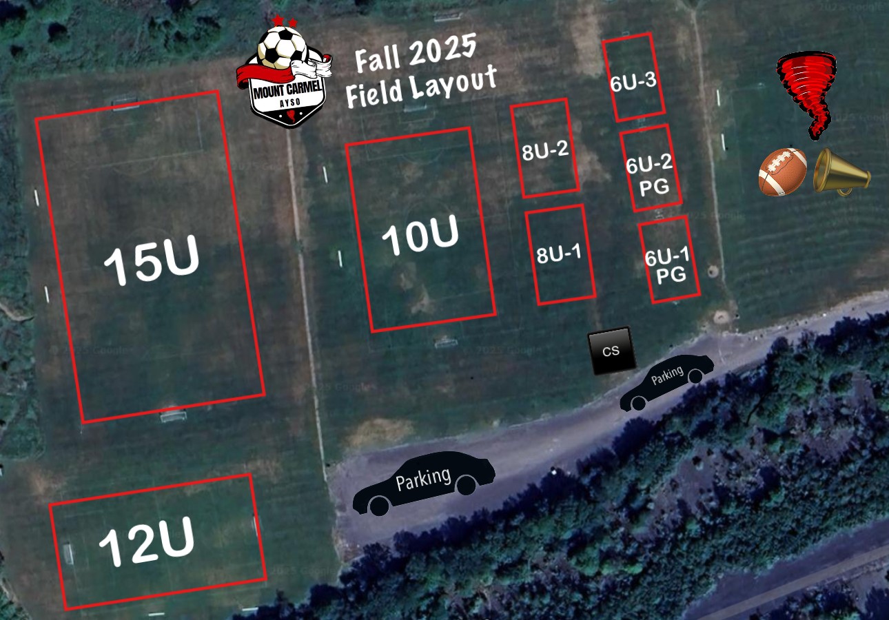 Our fields are located by heading South (East) from Mount Carmel on SR 61 for approximately 1/4 - 1/2 of a mile. The driveway is on the right hand side of the highway. - GPS = "Mount Carmel Soccer Fields" (These are NOT located at the high school)